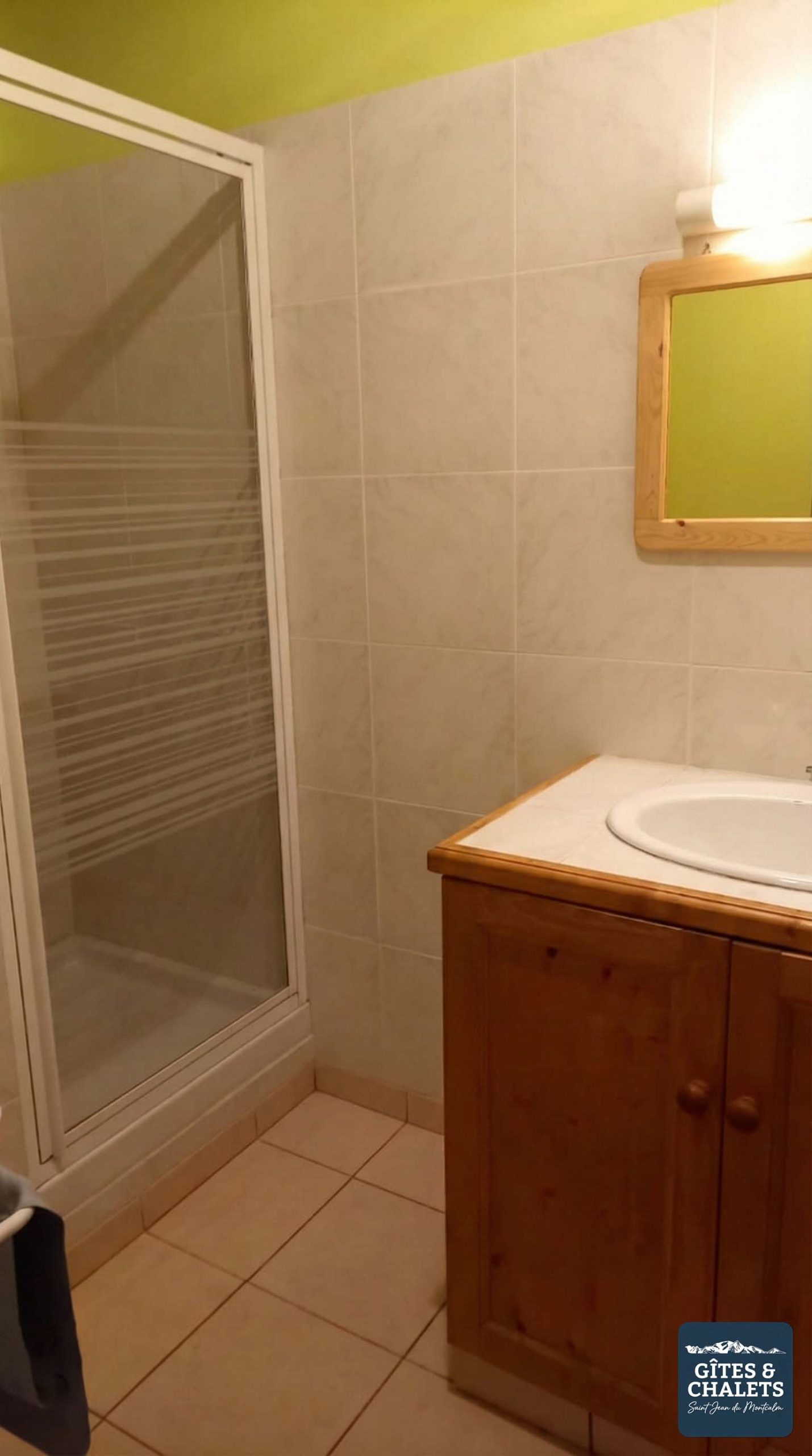 - Salle de bain : douche, vasque, sèche-serviette, sèche-cheveux, lave-linge, étendoir à linge.